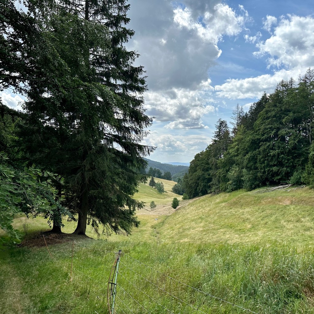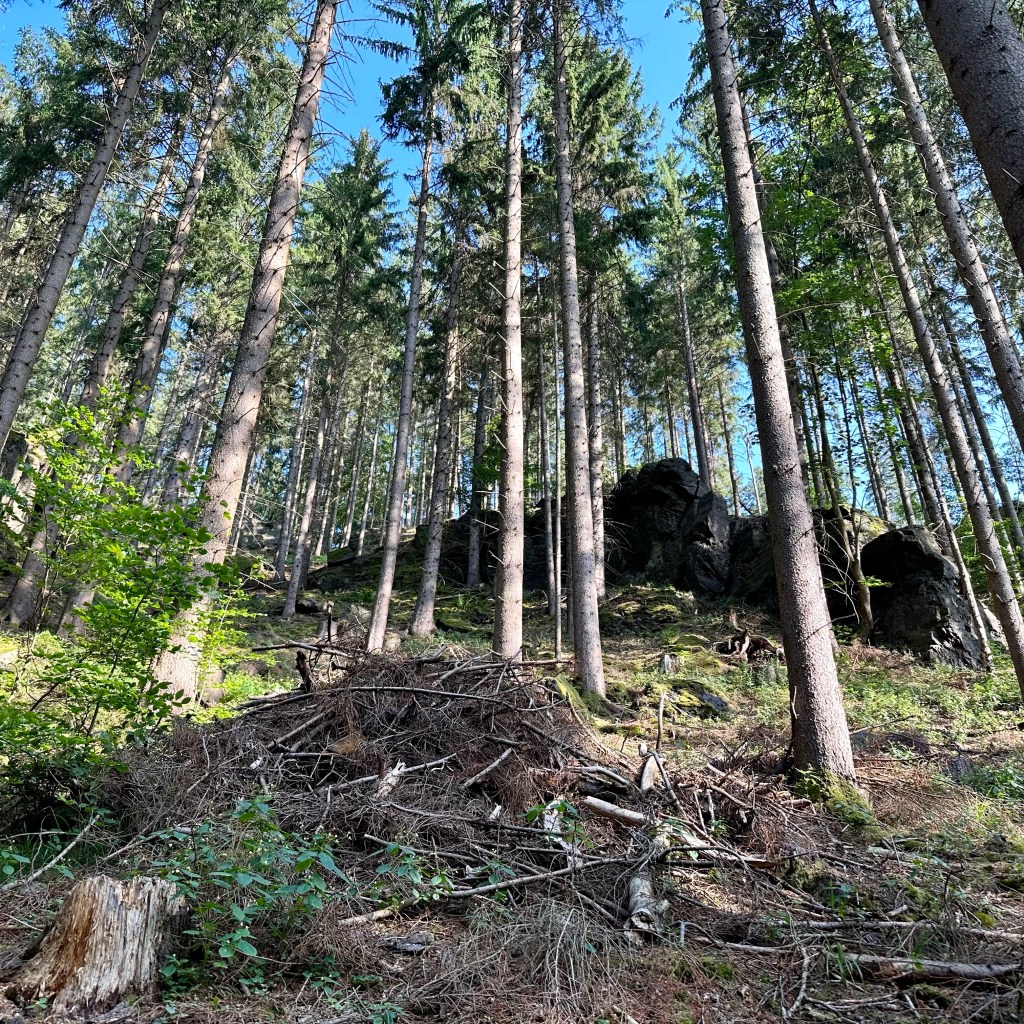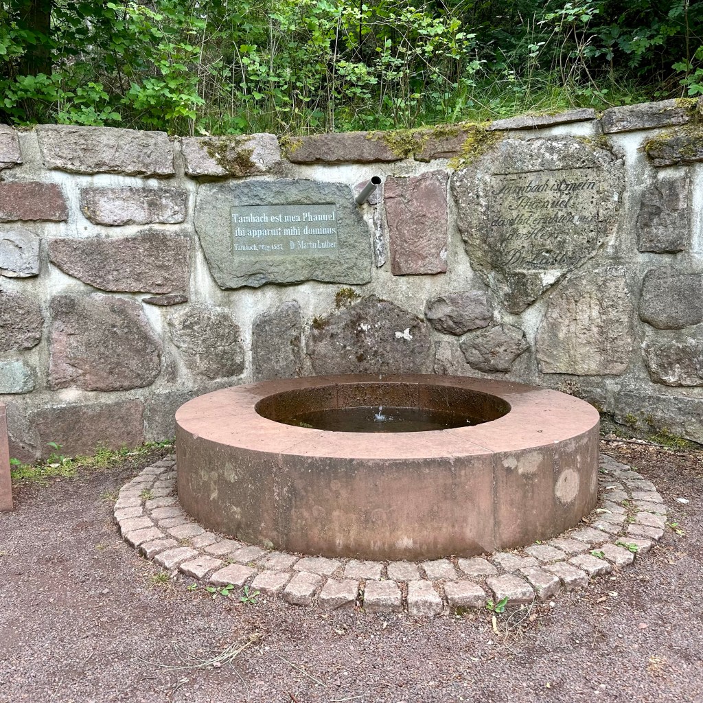 Wie ‚Saurier-Erlebnispfad’ und ‚Lutherweg’ näher zusammengehen, will ich an dieser Stelle nicht kommentieren, zumindest aber tun sie es geographisch, gleich hinter Georgenthal. Und das auf eine sehr lange Strecke hin, den zunehmend steiler werdenden Hang des Thüringer Waldes hinauf. Das Gebiet auf dem ‚Bromacker’ bei Tambach-Dietharz gehört zu den Hotspots paläontologischer Forschung weltweit. In diesen Tagen werde wieder ein internationales Team erwartet. Betont der ältere Tambacher, der mir rät, besser den Bus nach Schmalkalden zu nehmen. Und erwähnt der Forstbesitzer, dem ich unweit der Grabungsstätte begegne. Eigentlich hat er andere Sorgen: ‚Buchdrucker‘ und ‚Kupferstecher‘ machen seinen Fichten zu schaffen. In einer Tüte präsentiert er mir die Ausbeute der Fallen, mit denen die Borkenkäfer angelockt werden. Die Forstbehörde habe den ‚Kampf‘ gegen die erfolgreichen Rüsselkäfer bereits aufgegeben. In den nächsten Jahren werde sich der Thüringer Wald ähnlich wie der Harz entwickeln. Noch aber rauscht hier die Fichte, und wenn einer nicht so genau hinschaut, wirkt der Wald nahezu intakt. Für Eltern ist der ‚Saurier-Erlebnispfad‘ eine gute Gelegenheit, ihre fußmüden aber saurierlustigen Gören an eine längere Strecke von immerhin 4,5 Kilometer zu gewöhnen. Alle drei- bis vierhundert Meter eine neue Sensation in Form von ‚lebensechten’ Saurierskulpturen und ausführlichen Informationen aus der Zeit der Ursaurier und des Urkontinents ‚Pangäa‘. Gerne würde ich mit dem ‚Kleinen Flugdrachen‘ Coelurosauravus Jaekeli tauschen und im Gleitflug von Baum zu Baum den Berg hinaufgleiten. Kurz vor Erreichen des Gipfels mache ich Rast an einer, scherzhaft als ‚Bushaltestelle‘ getarnten Schutzhütte. Da hätte ich lange warten können, zumindest aber hätte ich auf eine kurzweilige Zeit hin Gesellschaft gehabt: Ein drahtiges Ehepaar aus Chemnitz kommt mit mir ins Gespräch und fragt mich besorgt, ob ich denn keine Angst davor habe überfallen zu werden, wo ich doch quasi meinen ‚Hausrat‘ mit mir trage. Ich erwidere, wenn es danach ginge, bräuchte ich gar nicht erst los zu laufen. Martin Luther ist im Februar 1537 wohl nicht gelaufen, sondern saß im Wagen. Immerhin hat ihn der Weg vom Treffen des ‚Schmalkaldischen Bundes‘, wie sich seine Vertreter anschließend nach dem Tagungsort nannten, von einer quälenden Last befreit: ‚Tambach … ist mein Phanuel (Pniel, Gen 31,32), an dem mir Gott erschienen ist“ schrieb der Reformator an seinen Kollegen Melanchthon. Ob es nun an dem Rumpeln des Wagens oder am Wasser des ‚Lutherbrunnens‘ lag, dass sich der prominente Harnwegsstein, der Luther das Leben zur Hölle machte, löste, Tambach hatte damit seinen Platz in der Geschichte der Reformation sicher. Und an Häusern, in Skulpturen und auf Gedenktafeln wird stolz auf das epochal-urologische Ereignis hingewiesen. In vorreformatorischer Zeit hätte man über der Stätte sicherlich eine Wallfahrtskirche errichtet und den Nieren- oder Blasenstein des Heiligen andachtsvoll präsentiert. Das Wasser aus dem Brunnen ist tatsächlich trinkbar, aber es schmeckt auch nicht besser als das profane Nass aus der Georgenthaler Leitung. Mit ‚Lutherbrunnen‘ in der Flasche – denn man kann ja nie wissen … – erreiche ich den Kamm des Höhenzugs und damit den Rennsteig, Deutschlands ältestem Weitwanderweg, an der Schutzhütte ‚Alte Ausspanne‘, 742 Meter ü NN. Weit geht der Blick ins Land, irgendwo im Vorland Richtung Ohrdruf oder Arnstadt brennt es, eine Rauchsäule steht über der Landschaft. Luther, um ihn nochmals zu bemühen, soll den Rennsteig tatsächlich auf Höhe der ‚Neuen Ausspanne‘, eine Strecke weiter südöstlich gequert haben. Aber der ‚Lutherweg‘ soll ja vor allem der Besinnung dienen, und so stolpere ich von Lutherzitat zu Lutherzitat auf den mancherlei Besinnungstationen den Weg hinunter nach Schmalkalden.