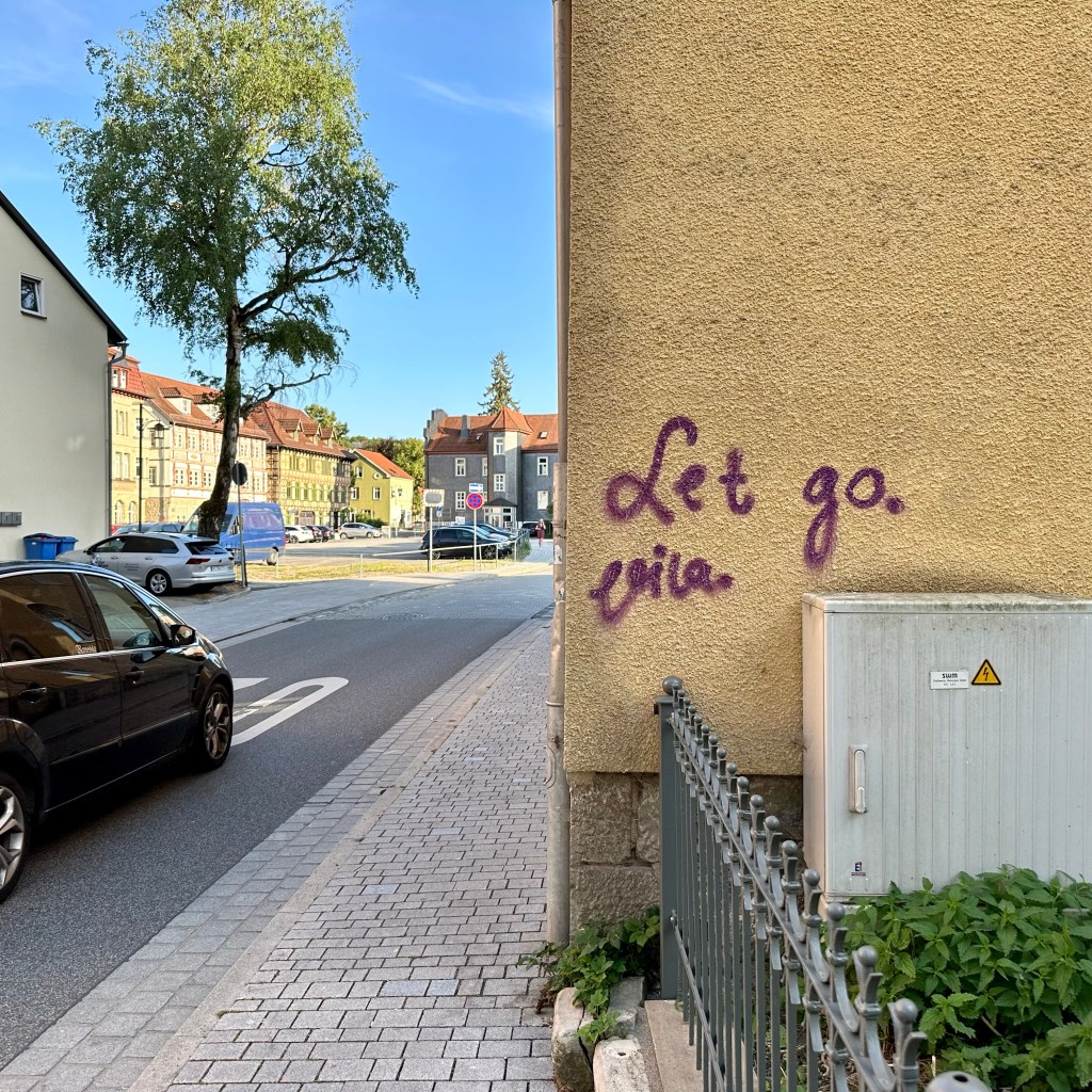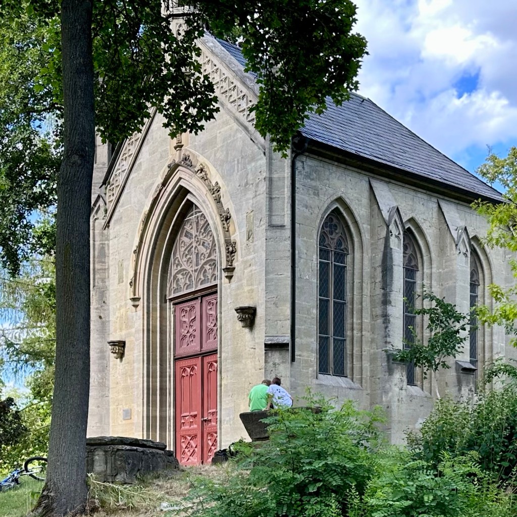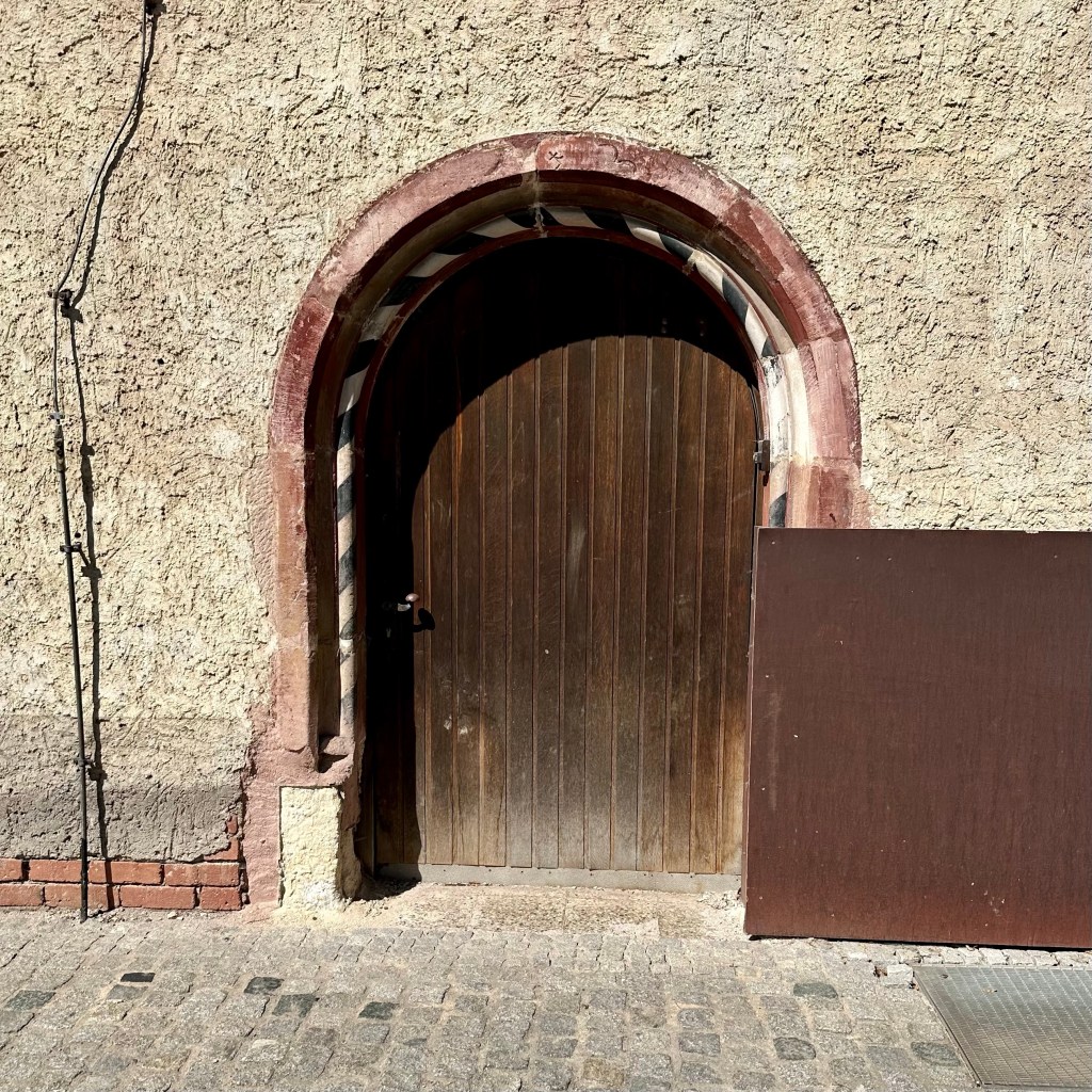 Auch der frühe Vogel braucht einen Kaffee. Das Frühstück habe ich dann spontan gleich in Mellrichstadt, einer Gemeinde in Unterfranken genommen. Hier hat es, was ich bisher vermisst hatte, ein Café direkt im Bahnhof! Die heutige Wanderung nach Münnerstadt wird lang genug sein. Dort habe ich noch eine Unterkunft für die Nacht gefunden. Ich plane immer drei Tage im Voraus, manchmal habe ich Glück, heute muss ich ein bisschen überbrücken. Auf der Strecke werde ich meine, gestern in Schmalkalden erworbenen Trekkingstöcke erproben. Lange hatte ich mich, auch aus Eitelkeit, gegen diese Hilfsmittel gesträubt, aber richtig eingesetzt, sind sie sicherlich eine gute Entlastung. Mein Rucksack ist eh ein bisschen zu schwer, allein schon durch den großen Vorrat an Wasser. Jetzt also Unterfranken. In Schmalkalden und Meiningen klang das rollende ‚R‘ schon in der Sprache an. Südthüringen ist historisch mehr mit Franken – und sogar mit Hessen – verbunden als mit den Gebieten jenseits des Rennsteigs. ‚Des Menschen Herz erdenkt sich seinen Weg; aber der Herr allein lenkt seinen Schritt.“ (Sprüche 16,9) Diese alte Erkenntnis teile ich gerne. Bisher habe ich mich grob an der Via Romea Germanica orientiert mit Ziel Rom, Eintreffen am 1. September und möglichst zu Fuß. Und da ich zu den Leuten gehöre, die eher auf‘s Geratewohl loslaufen und nicht jede Strecke en détail vorplanen, bin ich für Überraschungen offen, auch was mich betrifft. Wenn ich an die Strecke vor Stade, als ich mich bei Regen und Wind durchs Schilf kämpfte und schon aufgeben wollte, zurückdenke, bin ich jetzt doch angenehm überrascht und dankbar dafür, wie sich die Tour entwickelt hat. Und allmählich stellt sich eine gewisse Gelassenheit ein. Viele Wege führen nach Rom, dieser ist einer. Und so Gott will, werde ich Anfang September dort ankommen. Aber sicherlich wird alles anders kommen als geplant. Streng genommen, nehme ich ja die Route, die Albert von Stade auf seinem Rückweg genommen haben soll. Und heute kommt noch zur Via Romea, die tatsächlich durch Mellrichstadt führt, der ‚Fränkische Marienweg‘ hinzu. Und bald werden mich die Wegkreuze daran erinnern, dass jeder meiner Schritt zwar eine Entscheidung ist und jeder Gang ein bestimmtes Ziel hat, insgesamt aber jenseits von Wander-Apps und Kartenwerken und meiner kleinen Dreitagesplanung.