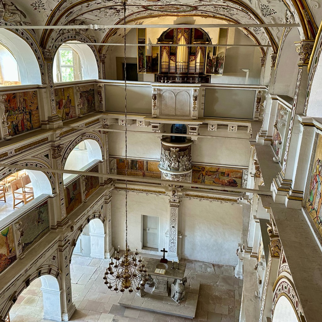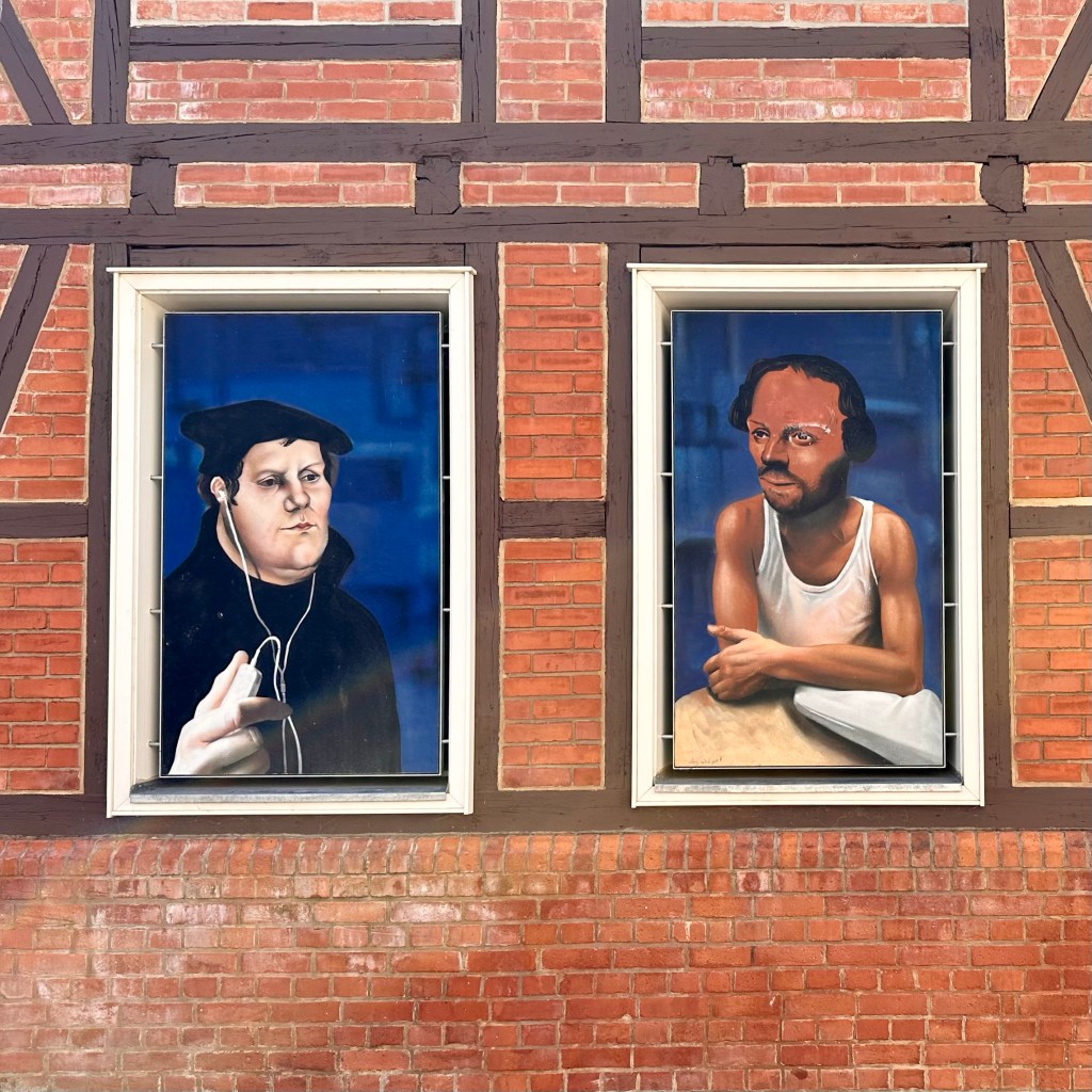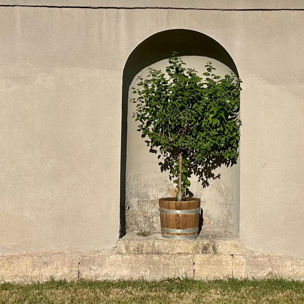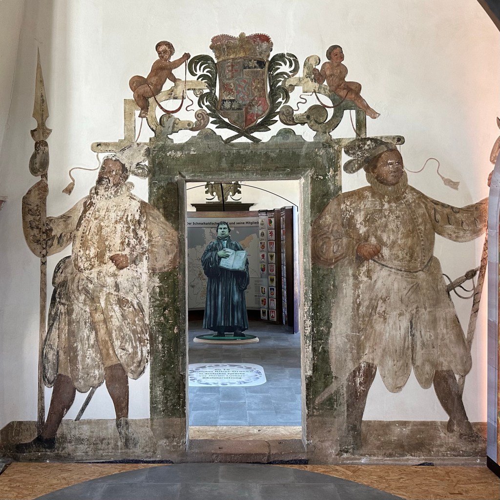 Auch der frühe Vogel braucht einen Kaffee. Das Frühstück habe ich dann spontan gleich in Mellrichstadt, einer Gemeinde in Unterfranken genommen. Hier hat es, was ich bisher vermisst hatte, ein Café direkt im Bahnhof! Die heutige Wanderung nach Münnerstadt wird lang genug sein. Dort habe ich noch eine Unterkunft für die Nacht gefunden. Ich plane immer drei Tage im Voraus, manchmal habe ich Glück, heute muss ich ein bisschen überbrücken. Auf der Strecke werde ich meine, gestern in Schmalkalden erworbenen Trekkingstöcke erproben. Lange hatte ich mich, auch aus Eitelkeit, gegen diese Hilfsmittel gesträubt, aber richtig eingesetzt, sind sie sicherlich eine gute Entlastung. Mein Rucksack ist eh ein bisschen zu schwer, allein schon durch den großen Vorrat an Wasser. Jetzt also Unterfranken. In Schmalkalden und Meiningen klang das rollende ‚R‘ schon in der Sprache an. Südthüringen ist historisch mehr mit Franken – und sogar mit Hessen – verbunden als mit den Gebieten jenseits des Rennsteigs. ‚Des Menschen Herz erdenkt sich seinen Weg; aber der Herr allein lenkt seinen Schritt.“ (Sprüche 16,9) Diese alte Erkenntnis teile ich gerne. Bisher habe ich mich grob an der Via Romea Germanica orientiert mit Ziel Rom, Eintreffen am 1. September und möglichst zu Fuß. Und da ich zu den Leuten gehöre, die eher auf‘s Geratewohl loslaufen und nicht jede Strecke en détail vorplanen, bin ich für Überraschungen offen, auch was mich betrifft. Wenn ich an die Strecke vor Stade, als ich mich bei Regen und Wind durchs Schilf kämpfte und schon aufgeben wollte, zurückdenke, bin ich jetzt doch angenehm überrascht und dankbar dafür, wie sich die Tour entwickelt hat. Und allmählich stellt sich eine gewisse Gelassenheit ein. Viele Wege führen nach Rom, dieser ist einer. Und so Gott will, werde ich Anfang September dort ankommen. Aber sicherlich wird alles anders kommen als geplant. Streng genommen, nehme ich ja die Route, die Albert von Stade auf seinem Rückweg genommen haben soll. Und heute kommt noch zur Via Romea, die tatsächlich durch Mellrichstadt führt, der ‚Fränkische Marienweg‘ hinzu. Und bald werden mich die Wegkreuze daran erinnern, dass jeder meiner Schritt zwar eine Entscheidung ist und jeder Gang ein bestimmtes Ziel hat, insgesamt aber jenseits von Wander-Apps und Kartenwerken und meiner kleinen Dreitagesplanung.