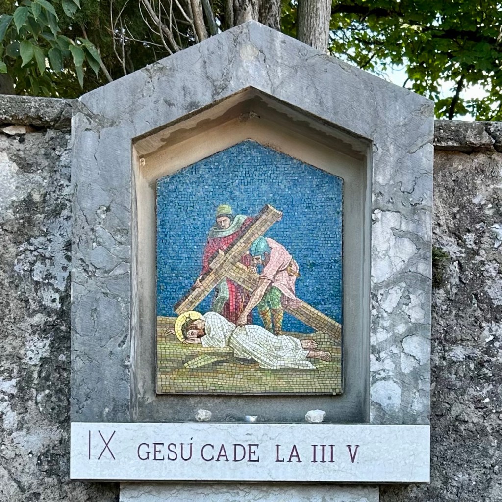 Auch das kommt bei einem miserablen Kartenleser wie mir mitunter vor: Ich habe mich heute richtig verlaufen. Das heisst, ich bin die Via Romea, die in Trento eine Art enge Schlaufe macht, einfach mal zurückgelaufen. Das wäre Albert nicht passiert – und Albrecht auch nicht. Ja, Dürer war hier auch schon unterwegs. Verlaufen aber habe ich mich. Und dies auf recht fromme Weise, über einen steilen Kreuzweg hoch über dem Palast der einst mächtigen Trienter Fürstbischöfe, dem Castello del Buonconsiglio. Meine ‚Entscheidung‘ war dann nicht wirklich schlecht. Eben hatte ich noch den Garten des Kastells bewundert, dann folgte ich Jesus auf seinem Weg bis zu Kreuz und Grablegung den Hang hinauf. Am Ziel, der Kirche Santuario della Madonna delle Laste, stimmte gerade ein Frauenchor ‚Laudate omnes gentes‘ an. Unter diesen entrückten Klängen suchte ich den Anschluss an den Weg Richtung Veneto. Was dann kam, dagegen war der Trienter Kreuzweg ein morgendlicher Spaziergang. Die Steigung bis zum Passo Cimirlo, der das Trentino mit dem Valsugana verbindet, wollte einfach nicht enden. Da die Italiener Wasser lieben wie ihre römischen Vorfahren, stand zum Glück irgendwo immer ein Brunnen bereit, der auch dem verschwitzten Teutonen Erfrischung schenkte. Den Pass habe ich dann mit Bravour – das heisst mit allerletzter Kraft – genommen. Dann verließen sie ihn in Pergine. Nun hat mich die Bahn, die wohl einst dazu eingerichtet wurde, um Mineralwasser und Kurgäste hin- und her zu transportieren, bis nach Levico Terme im Tal der Brenta gebracht. Hier möchte ich bleiben. Und dem vorbeifahrenden Kurbimmelbahnbus zuschauen. Und nachschauen. Und warten, bis er wieder vorüberfährt. Da ist doch heute einem Caravan mit Gütersloher Kennzeichen mitten auf der Hauptstraße der Motor ausgegangen – und niemand hat gehupt! Was für ein Ort! Aber es ist ja auch Sonntag. By the way: Der Ort ‚Levico Terme’ wird bis heute auch unter ‚Löweneck‘ geführt, aber diese Eindeutschung ist wohl den bis 1919 herrschenden Österreichern zu verdanken. Wer die Macht hat, bestimmt die Regeln.