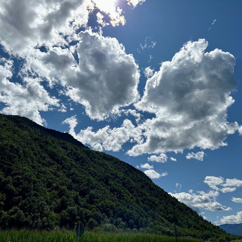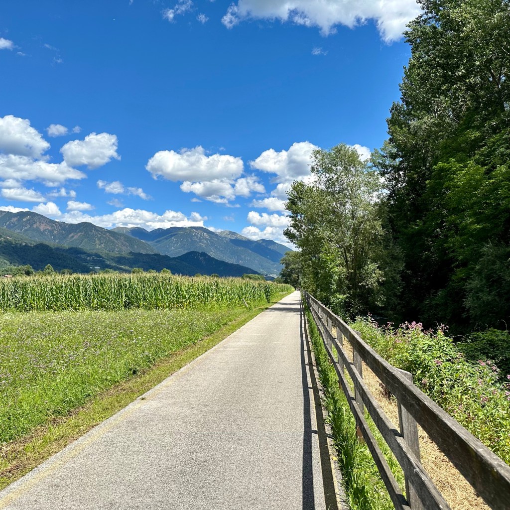 Es sind tatsächlich die Fensterläden. Sie sind das, was ich an Italien besonders liebe. Du sitzt drinnen, draußen regnet es, oder es brennt die Sonne vom Himmel, die hölzernen Fensterläden bieten Schutz vor allen Wettern. An die italienische Art Betten zu beziehen werde ich mich wohl nicht mehr gewöhnen. Auch wenn in Ottensen manchmal ein Laken ausreichte, um mit der nächtlichen Hitze klar zu kommen. Aber wohin mit der gesteppten Tagesdecke und wohin mit meinem Drang nach Beinfreiheit in dem eng gesteckten Betttuch?! Nun sitze ich auf der Terrasse einer Herberge in Primolano. Die Brenta fließt hier quasi durch ein Nadelöhr, bevor sie im Veneto villenreich und also großzügig zu Ehren kommt. Über mir droht eine steile Felswand. Die Zikaden zirpen. Der Autoverkehr nach Padua und Venedig legt sich langsam. Und die Wirtin schaute eben ein bisschen überrascht, dass der radebrechende Tedesco so ‚spät‘ noch auf dem Dach sitzen will. Aber hier ist gut sein. Das war nicht immer so. Unweit verlief einst die Grenze zwischen dem Königreich Italien und Österreich, und die enge Schlucht wurde durch die ‚Forte Tombion’ ‚militarisiert‘. Jede Landschaft hat ihre Geschichte, und beim Anblick der ach so ‚romantischen‘ Burgruinen denken wohl die wenigsten an Kriegslärm, brennende Dörfer und ausgehungerte Burgsassen. Auf der Terrasse in der Felsenkluft ist es aber heute friedlich, und demnächst werden sich auch hier die Fensterläden wieder schließen.