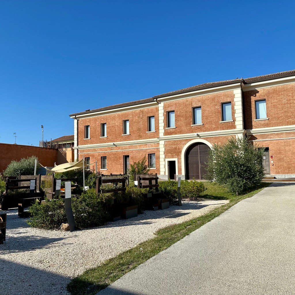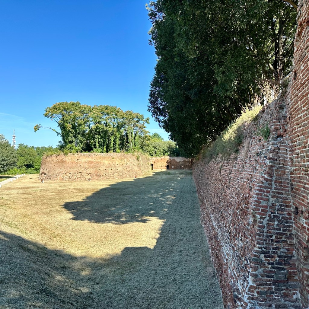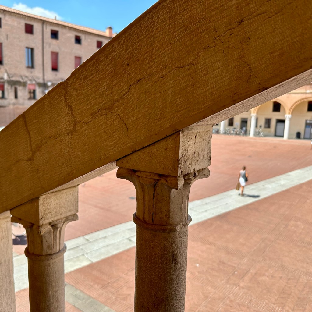 Auf den ersten Blick wirkt die Stadt wie eine triste Vorstadt, die sich das Zentrum erobert hat. Ferrara trägt einen etwas angegrauten Schleier. Erst die Abendsonne taucht alles in ein gnädiges Licht. Aber die Großstadt, die irgendwie keine sein will, ist gut durchdacht. Ein regelmäßiges Netz von Straßen und Gassen, Längs- und Querverbindungen sorgt dafür, dass alles im Blick bleibt und erreichbar ist. Wer das Prinzip eines der ältesten modernen Stadtplanungen der Welt verstanden hat, wird sich hier niemals mehr verlaufen. Eine sympathische Stadt, die weitgehend unprätentiös, fast schon verschwiegen daherkommt. Das liegt sicherlich auch an der Hitze, die den Touristen gehört. Aber so verschwiegen auch wieder nicht. Das Castello Estense, die wehrhafte Burg der einstigen Herrscherfamilie der D’Estes im Zentrum Ferraras ist ein deutliches Statement. Dagegen wirkt der Dom recht bescheiden. Ferrara ist seit der Zeit der D‘Estes ein Ort der Kultur. Und der Toleranz, mit bitteren Unterbrechungen. Hier fanden spanische Juden, die infolge der ‚Reconquista‘ 1492 vertrieben wurden, eine neue Existenz. Bis die D‘Estes keinen männlichen Nachfolger mehr vorweisen konnten und Ferrara Ende des 16. Jahrhundert unter päpstliche Gewalt fiel und Juden, wenn sie nicht schon ausgewandert waren, im Ghetto leben mussten und entrechtet wurden. Die Geschichte der Juden auf dem Gebiet des heutigen Italiens, seit der Zerstörung des Jerusalemer Tempels 70 n. Chr. bis zur Shoah, dokumentiert das hervorragende Museo Nazionale dell’Ebraismo Italiano e della Shoah, kurz MELS https://meis.museum/ – Ferrara lohnte ein paar Tage mehr. Aber nun sitze ich schon im Regionalzug und fahre durch die Emilia-Romagna Richtung Ravenna. Gut klimatisiert. Die Landschaft ist flach. Der Boden fruchtbar. Und monotone Situationen fördern ja die Meditation beim Gang durch die Botanik. Aber nicht bei 32 Grad im Schatten – ohne Schatten.