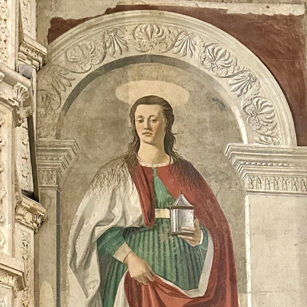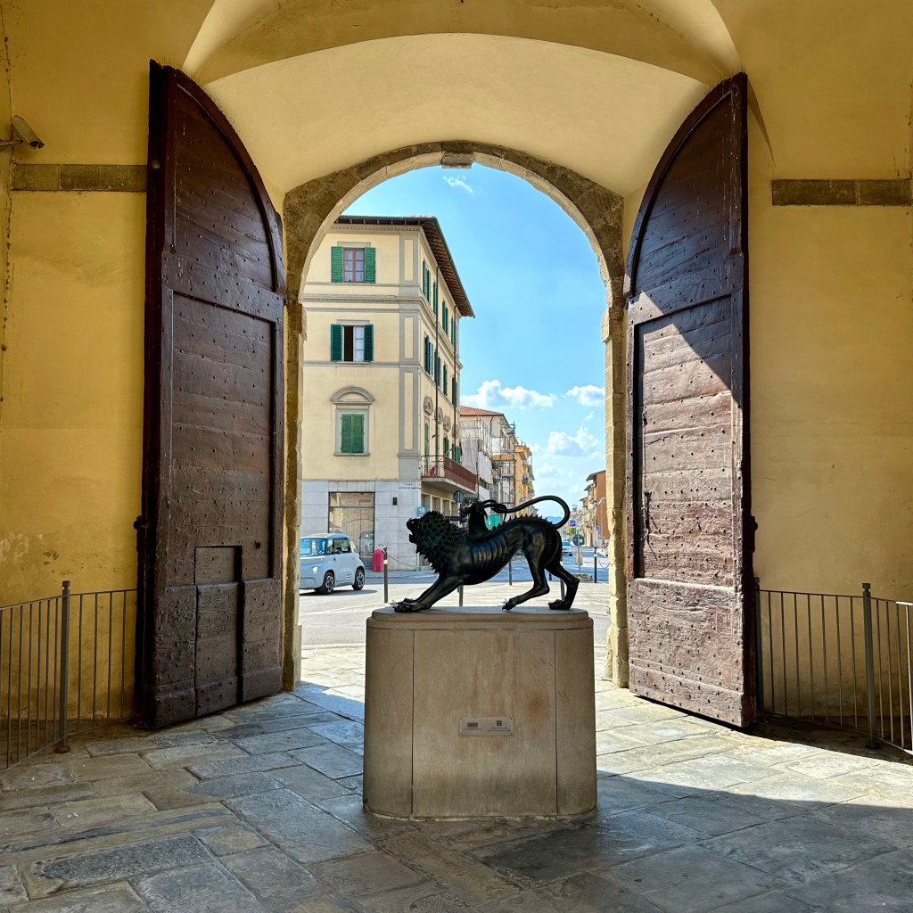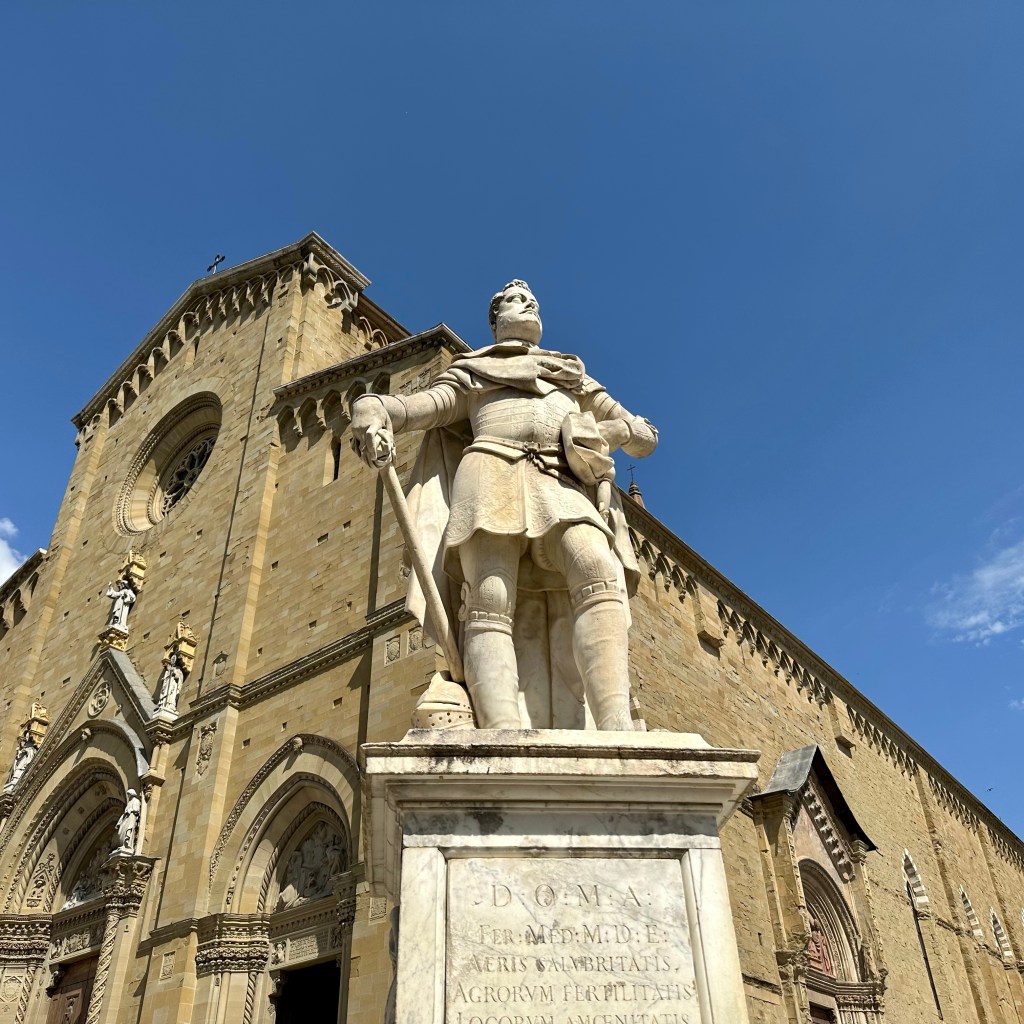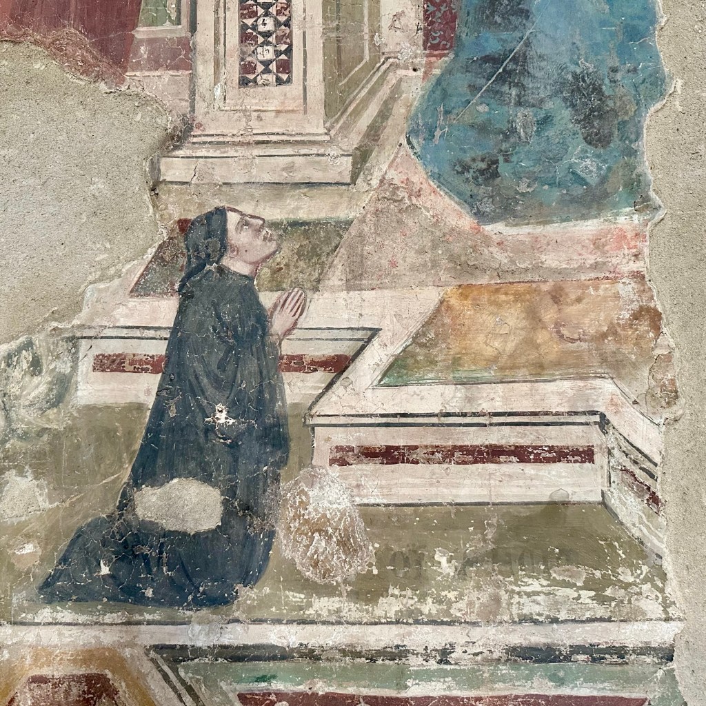 Der Weg vom beschaulichen Kurort Bagno di Romagna nach Arezzo liegt hinter mir. Und ich kann mir nur annähernd ausmalen, wie strapaziös diese Passage für einen Reisenden im 13. Jahrhundert gewesen sein muss, zu jeder Jahreszeit. Für mich Busreisenden war dies schon abenteuerlich genug. Aber die Fahrerin und die beiden späteren Fahrer nahmen alle engen Kurven und abschüssigen Straßen mit erfahrener Lässigkeit. Bis wir nach dem breiten und aufgeheizten Tibertal endlich Arezzo erreichten. Und jetzt die Toskana, altes etruskisches Kulturland. Auch für denjenigen, der sich nicht um ein Kulturticket kümmert, gibt es noch genug zu sehen. Das berühmte Kruzifix Cenni de Pepos oder ‚Cimabues‘ in der Chiesa di San Domenico möchte ich mir heute anschauen. Albert von Stade mag davor gebetet haben. Immerhin gab es am Abend ein bisschen Regen, aber keine Abkühlung. Und es hat kaum einen Vorteil, bei Sonnenaufgang aufzubrechen, denn es ist generell heiß. Ich will heute meinen ‚öffentlichen‘ Weg, zumindest an der Via Romea entlang fortsetzen, zunächst nach Castiglion Fiorentino, dann nach Cortona.