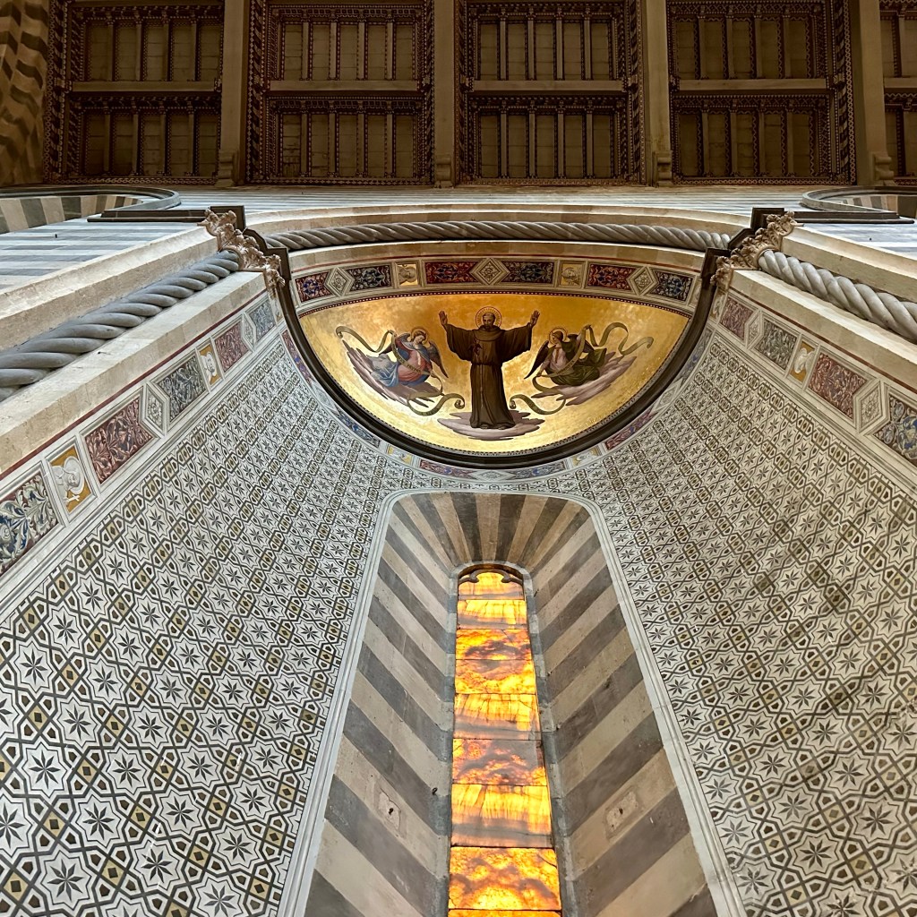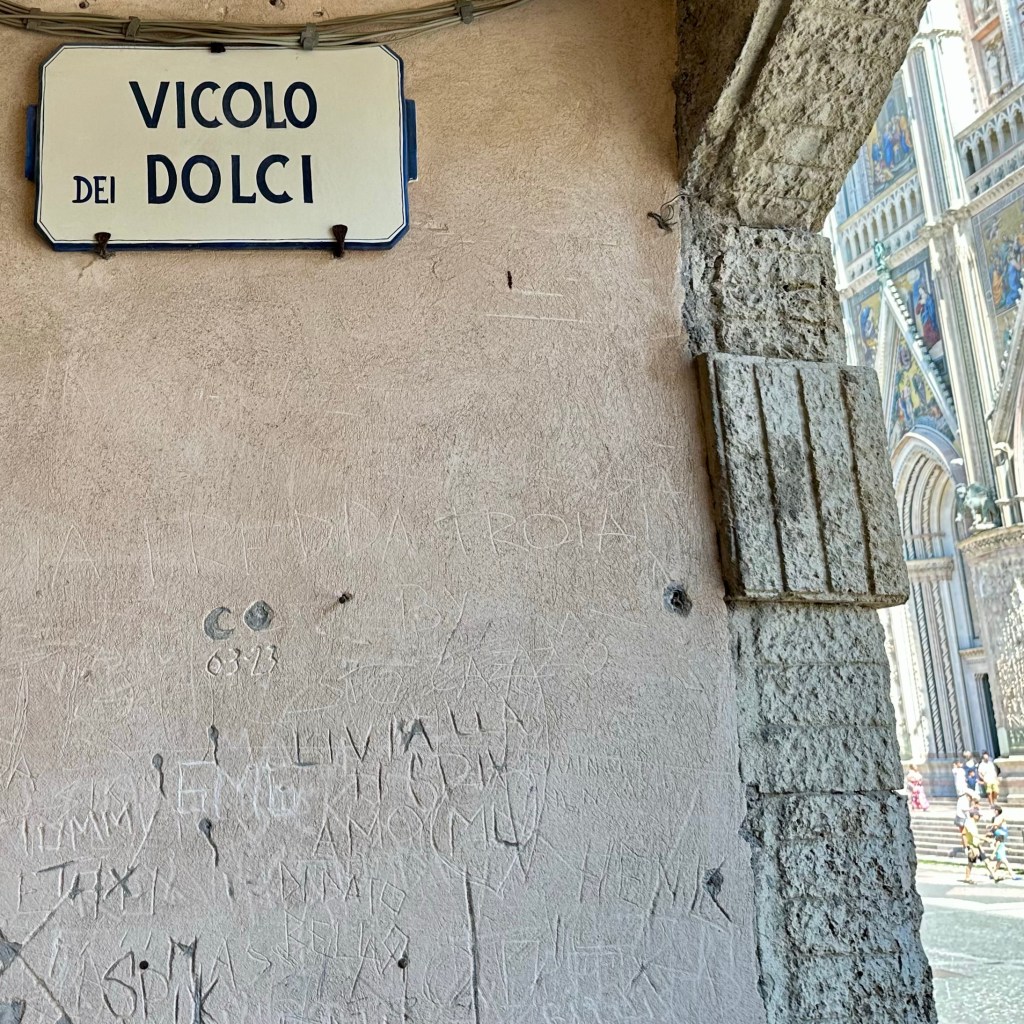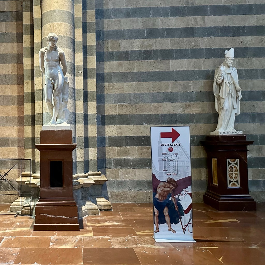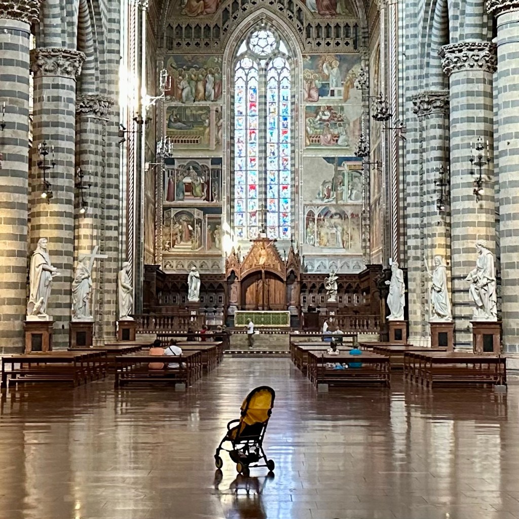 Das Hirn ist schon ein besonderes Mysterium. Und darin das Sprachzentrum. Dem Mitgast, dem ich eben im Garten von Orvieto ein freundliches ‚Bonjour‘ zurufe, war vielleicht für einen Moment irritiert. Aber ich musste mich erst einmal selbst orientieren und etwas Sinnvolles von mir geben. Warum also nicht auf Französisch?! Es ist noch früh am Morgen, aber gleich gibt es Kaffee. Eine Orientierung besonderer und grundsätzlicher Art erlebte ich gestern auf dem Gang um die Stadt, vor allem aber im Dom von Orvieto. Was für ein Gotteshaus! Die zwölf monumentalen Apostelfiguren und vier weitere Heilige weisen dem Gläubigen den Weg in das Mysterium des Glaubens. Dieses gewaltige Bauwerk, an dem die verschiedensten und besten Meister ihres Fachs, u. a. Fra Angelico, gewirkt haben, verdankt seine Existenz letztlich dem Zweifel eines böhmischen Geistlichen, einem Pilger, an der Transubstantiationslehre. Das heißt, der Lehre von der vollkommenen Wandlung von Brot und Wein bei der Eucharistie in den wahren Leib und das wahre Blut Jesu Christi und seiner bleibenden Gegenwart. Ein ‚Thomas‘ also, der in Bolsena 1263, erleben musste, wie beim Brechen des Brotes bei der Abendmahlsfeier, Blut aus der Hostie strömte, und zwar so reichlich, dass ein Altartuch, das ‚Korporale‘, damit durchtränkt wurde. Dieses Tuch mit dem Blut Jesu Christi, so zumindest die fromme Überzeugung, wird heute noch in der Seitenkapelle des Doms präsentiert und verehrt. Das Wunder aber wurde bald darauf vom damaligen Papst Urban IV. bestätigt und der heilige ‚Beweis‘ nach Orvieto geholt. Daraus entstand letztlich das Fronleichnamsfest, das die römisch-katholische Kirche in jedem Sommer, 60 Tage nach Ostern, mit Gottesdiensten und Prozessionen feierlich begeht. Es gibt wohl keinen Tag, der so programmatisch aufgeladen und die Kontroverse zwischen Katholiken und Protestanten so deutlich markiert hat, wie dieser Tag. Von den protestantischen Mistfuhren auf den Prozessionsrouten nicht zu schweigen. Dies hat sich sicherlich gewandelt. Luther kritisierte an dem Fest die päpstliche, jeder biblischen Begründung entbehrende, Bemächtigung des ‚Themas’, das eigentlich am Gründonnerstag seinen Sitz habe, wenn es denn um den Tag ginge. Abgesehen vom sicherlich immer mal wieder sehr volkstümlichen Prozessionstreiben. Wie auch immer: Der Glaube baut Gott Häuser wie dieses. Und manchmal haben sich wohl auch politisches Kalkül oder die Furcht vor der ewigen Verdammnis untergemischt. Ich bin einige Zeit in der Basilika geblieben und habe mich gefragt, was von den vielen ‚Botschaften‘ dieses Kirchraums heute noch beim Besucher oder bei der Besucherin ankommt. Bei aller Fülle, im Zentrum des Altarraumes ist auch hier das Kreuz aufgerichtet, so einfach wie anrührend gehalten, dass es in dieses opulente Setting nicht zu passen scheint. Die Frage ist: Ist dies der ‚Schlüssel‘ zum Verständnis des gesamten Raumes und seines Inventars? Der Raum jedenfalls wird besucht und bestaunt, vermutlich weitgehend unbekümmert von den Fragen nach den letzten Dingen. Die mächtigen Bronzetüren sind aufgeheizt von der Mittagssonne, nicht vom Höllenfeuer diesseits des heiligen Raumes? – Heute soll es später ins ‚Museo Archeologico Nazionale di Orvieto’ mit weiteren Zeugnissen etruskischer Kultur und zu dem architektonischen Meisterwerk, dem Brunnen ‚Pozzo di San Patrizio‘ des Antonio da Sangallo aus dem 16. Jahrhundert gehen.