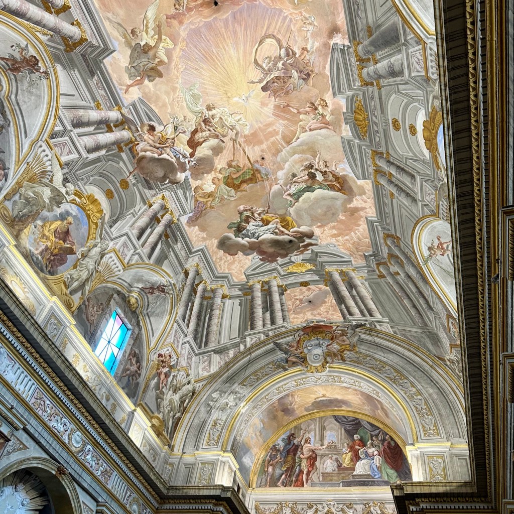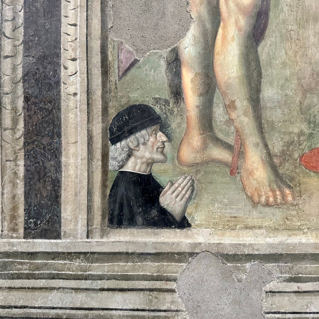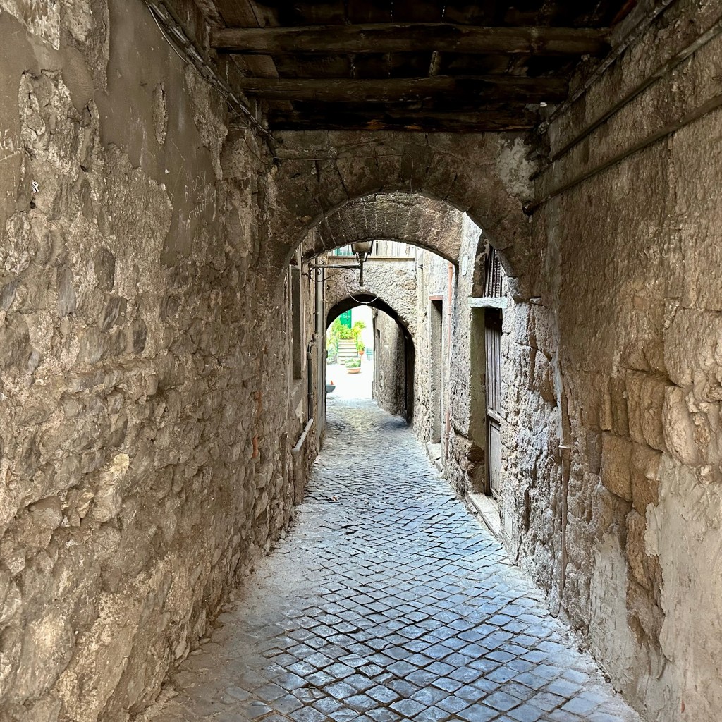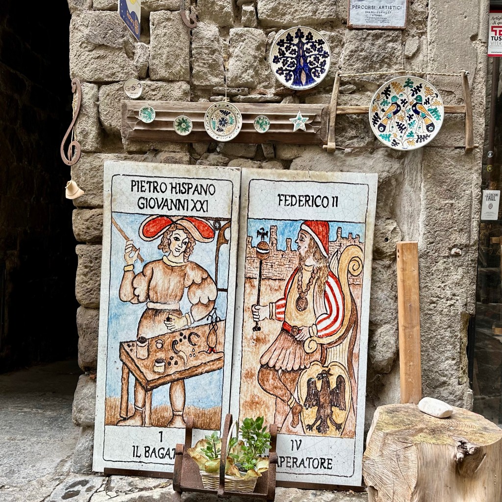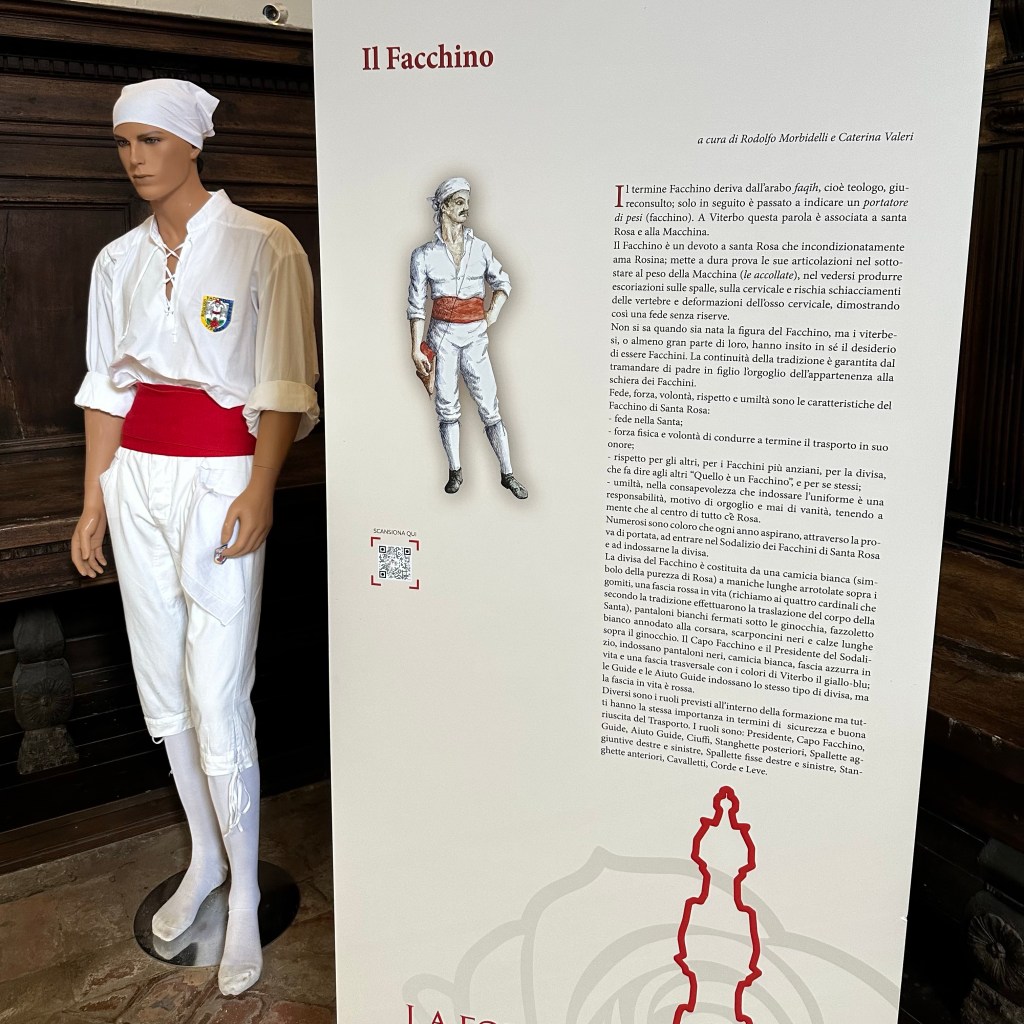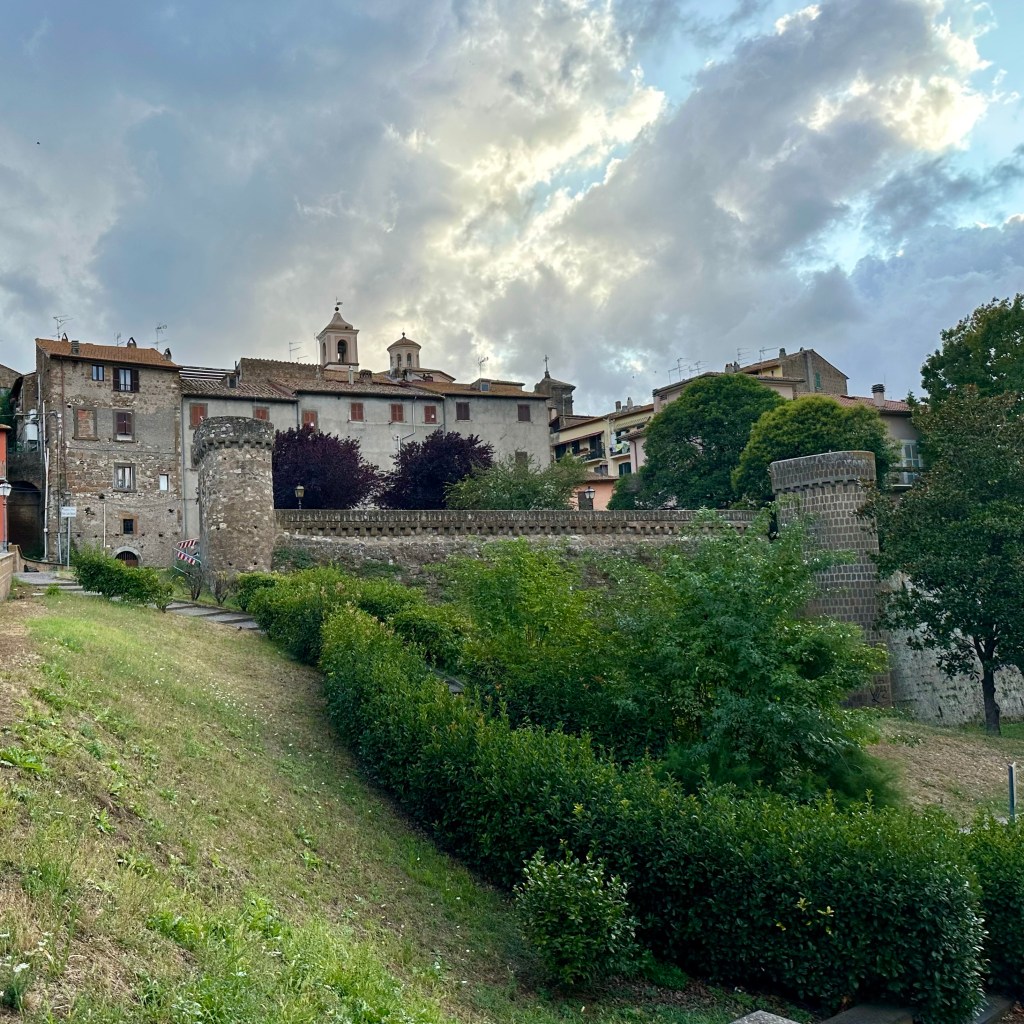 Es muss die ganze Nacht hindurch geregnet haben, und es regnet noch. Und es ist merklich frischer geworden. Eichen im Nebel. Ob ich den Weg nach Sutri durch Eichenwald und Haselstrauch zu Fuß antreten werde, werde ich sehen. Gestern, als ich am Abend nach einem langen Weg durch Vetralla zurückkehrte, wurde ich am Waldrand, an dem meine Herberge liegt, schon mit einem tiefen, nicht wirklich freundlichen Warngrunzen von einem Wildschwein begrüßt. Ihm mag heute der Wald gehören. Vetralla liegt im vulkanisch geprägten Hügelland des südlichen Tusciens. Viterbo habe ich mir gestern noch ein bisschen näher angeschaut. Als ‚Stadt der Päpste‘ wird sie beworben, und ihre Präsenz im 13. Jahrhundert lässt sich heute noch gut an den erhaltenen, oder nach den Zerstörungen des 2. Weltkriegs rekonstruierten, Palästen im Stadtbild ablesen. Wer einen Film über das Mittelalter des 13. oder 14. Jahrhundert drehen wollte, fände hier reichlich Kulisse, inklusive mächtiger ‚Geschlechtertürme‘, Pilgerherbergen und Gassen, bei dem einer jederzeit damit rechnet, dass William von Baskerville aus dem ‚Namen der Rose‘ auf einem Maulesel um die Ecke kommt. Hier suchte die päpstliche Kurie nicht nur Schutz vor den römischen Adelsfamilien, hier haben sie auch einen Papst gewählt, im bisher längsten Konklave der Geschichte. Ganze 1005 Tage, vom 30. November 1268 bis zum 1. September 1271, soll es bis zur Wahl von Papst Gregor X. gebraucht haben. Zuletzt empfahl Bonaventura, die Kardinäle auf Wasser und Brot zu setzen. Das half. ‚A closed Society, like a Monastery‘ sei Viterbo bis heute. Ich treffe in der ‚Casa di Santa Rosa‘ auf Pietro, einem ‚Pathfinder and Hiking Guide‘, der Pilgerinnen und Pilger aus aller Welt auf der Via Francigena begleitet. Wer der Gesellschaft von Viterbo ‚ins Herz‘ schauen möchte, muss wohl das Wohnhaus und das anliegende Kloster, das sich heute dem Gedächtnis Santa Rosas, der Patronin Viterbos, verschrieben hat, aufsuchen. Hier wird die jung verstorbene Frau aus dem 13. Jahrhundert bis auf den heutigen Tag als Schutzheilige junger Mädchen verehrt. In einem großen Saal ist ihr mumifizierter Leichnam aufgebahrt. Dass sie bald zur Volksheiligen erklärt wurde, liegt vermutlich in einer Mischung aus tiefer Frömmigkeit und politischer Zweckmäßigkeit in unsicheren Zeiten begründet. Mit ihrem klaren Bekenntnis zum Papst und gegen die zeitweise starke Bewegung der Katharer, vor allem gegen den zu ihrer Zeit bereits als ketzerisch verdammten römisch-deutschen Kaiser Friedrich II, war sie als Symbolfigur willkommen. Seit dem 17. Jahrhundert wird zu Ehren der Hl. Rosa jährlich die ‚Macchina di Santa Rosa‘, ein 28 Meter hoher und fünf Tonnen schwerer Turm, mittlerweile aus Aluminium, Glasfaser und weiteren leichteren und feuerfesten Materialien gebaut. Und dann am Abend von der Gemeinschaft der ‚Facchini’ von der Porta Romana bis zur Chiesa di Santa Rosa getragen. Das Mega-Ereignis wird im Fernsehen live gesendet. Mit der Strecke wird an die päpstlich angeordnete Überführung der Heiligen nach ihrem Tod in das Kloster der Klarissen erinnert. Denn die Franziskanerinnen, zu denen Rosa einst gehören wollte, hatten Rosa drei Mal abgelehnt. Die diesjährige ‚Macchina‘ steht schon bereit, und die Männer, die dieses Gewicht stemmen wollen, bereiten sich vermutlich schon den ganzen Sommer in den Muckibuden Viterbos darauf vor. Draußen kündigt dichter Nebel das Ende des Sommers an. Ich werde jetzt meinen ‚Zaino‘, meinen Rucksack packen und vergleichsweise unbeschwert zur Station traben, Fahrziel Station Capranica-Sutri, dann zumindest den Teil des Weges ohne Wald nach Sutri.