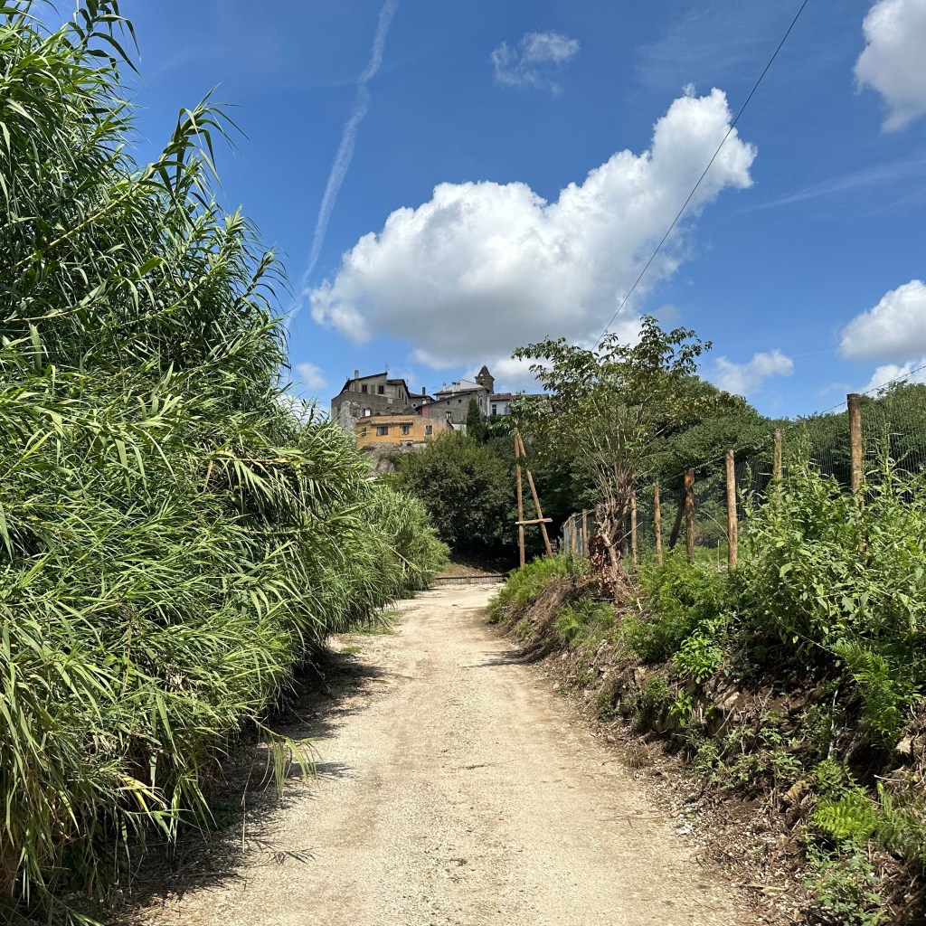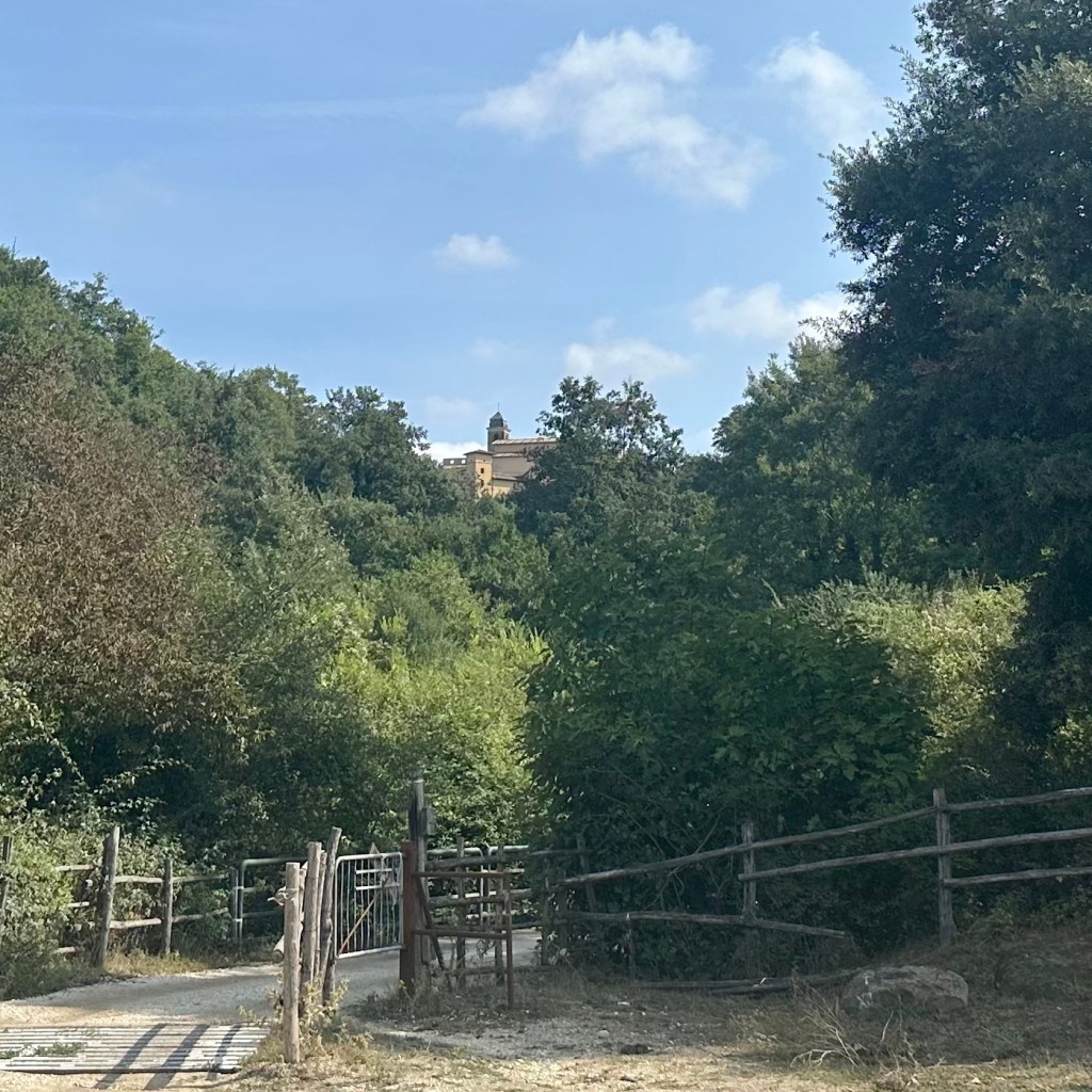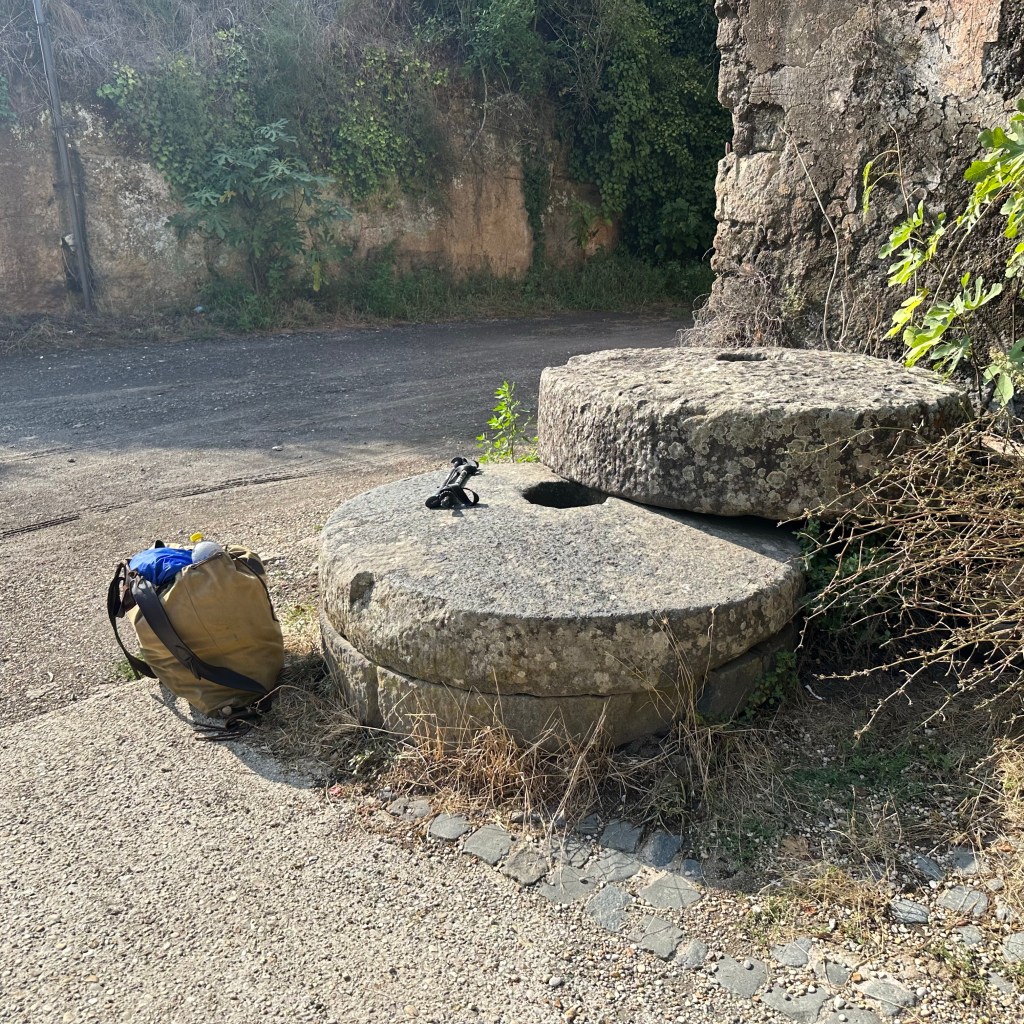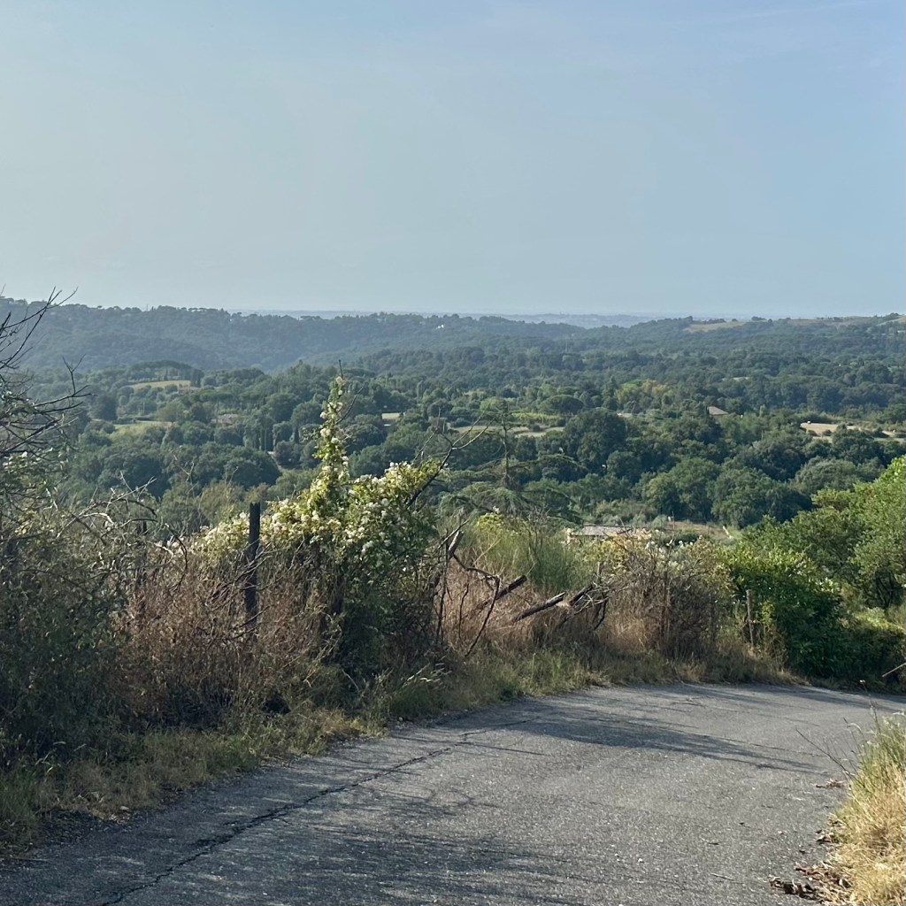 Noch etwa 17 Kilometer bis Rom. Zentrum. Ich bin heute Abend schon mal ein paar Schritte in Richtung Kapitale vorausgelaufen, Google brachte mich dann wieder zurück in meine Unterkunft zwischen Olgiata und La Storta. An ein Resümee mag ich noch nicht denken, vielleicht nur so viel, dass ich mittlerweile mindestens zu 10 Prozent aus Kefir bestehe. Sehr schmackhaft, sehr erfrischend und sehr bekömmlich! Besonders die Variante mit Orange, Ingwer und Kardamom. Aber das sind Gedanken, die vielleicht nach einer solchen Reise kurz vor Erreichen des ‚Ziels’ eher schnöde wirken. Ein zweites ‚Est!!!‘ werde ich deswegen nicht anstimmen. Für einen Moment hätte ich heute auf dem Weg tatsächlich beinahe gesungen. Als ich auf dem Weg durch die Fortsetzung des Veio-Naturparks auf einem Schild die Ermahnung las, die dort heimischen Wildschweine bitte nicht zu füttern oder aufzuscheuchen. Da ich bereits zwei Mal nicht gerade freundlich angegrunzt wurde, dachte ich, Singen wäre eine smarte Variante, den nicht immer scheuen Tieren zu vermitteln, dass ich doch eigentlich ganz nett sei. Ich habs uns dann erspart. Natur pur bis zur Via Cassia, die jetzt an mir vorbeirauscht. Ihren Erstbelag hatte ich bereits hinter Montefiascone unter die Füße bekommen. Vermutlich wird der Verkehr in der Antike oder im Mittelalter ähnlich über die Chaussee gebrandet sein, wie heute, nur ein bisschen entschleunigter. Das war heute auch mehr meine Gangart. Ich genoss den Spätsommertag und schritt durch die Gegend, vorzugsweise bergab und gelassen bergan und kostete noch einmal das Gefühl, auf diese besondere Weise unterwegs sein zu können, aus. Dazu muss ich bemerken, dass ich mich auf meiner Tour weitgehend überraschen ließ. Eine grobe Peilung hatte ich zwar immer, aber die Bestimmung des Ortes, an dem einer oder eine sich gerade befindet, ist eine sehr komplexe Angelegenheit. Da habe ich dann zuletzt einfach der weitgehend hilfreichen Beschilderung der Via Romea oder der Via Francigena vertraut. Notfalls auch der Google Map Info oder dem Routenplan. Und im Nachgang noch mal nachgelesen. Die einfache Logik lautet: Wo ‚Rom‘ am Ortseingang steht, da muss auch Rom drin sein. Und die Stadt wird mir ihr ‚Rom-Sein‘ schon so kräftig und farbig vermitteln, dass am Ende jeder Zweifel ausgeräumt ist – weitgehend. Also Auf jetzt! Die Sonne lacht! Nach Rom geht‘s nach links, immer nur die Straße runter!