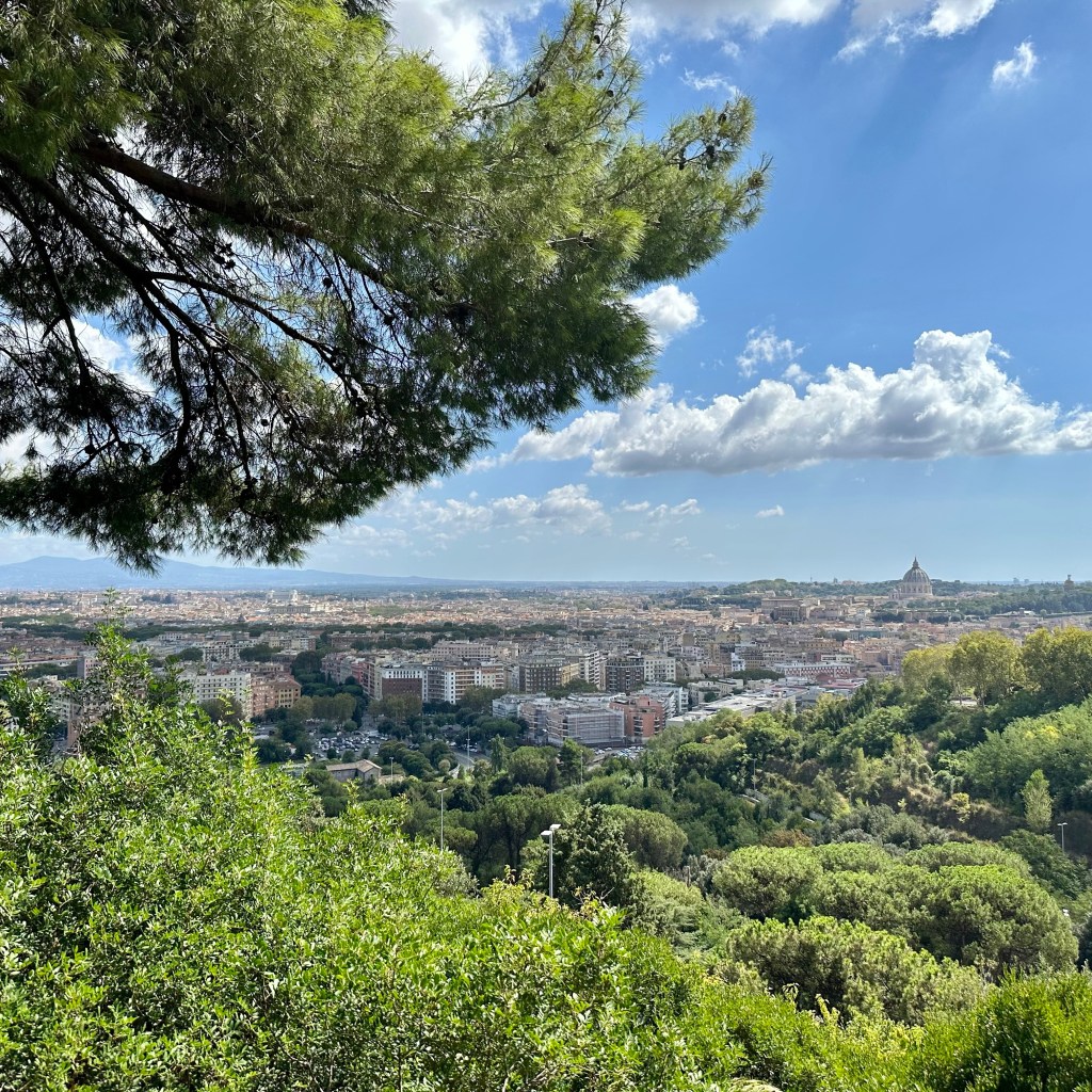 Für einen Moment lagen mir gestern die Stadt und St. Peter zu Füßen. Ich stand auf dem Belvedere auf dem Monte Mario, auch ‚Monte della Gioia’, Berg der Freude, genannt. Und als rechter Pilger hätte ich auf die Knie sinken, den Boden küssen und das alte Lied ‚O Roma nobilis‘ anstimmen müssen. Sicherlich war es ein bewegender Augenblick. Besonders, nachdem ich ein letztes Mal durch innerstädtisches (!) Wildschweinrevier gelotst wurde … Aber meine Reise ist noch nicht zu Ende. Im Laufe der Woche werde ich nach Ostia fahren. Davon dann später mehr. Jetzt freue ich mich über ein paar entspannte Tage in Rom mit meinem Mann. Und ja: Der Lateran steht noch!